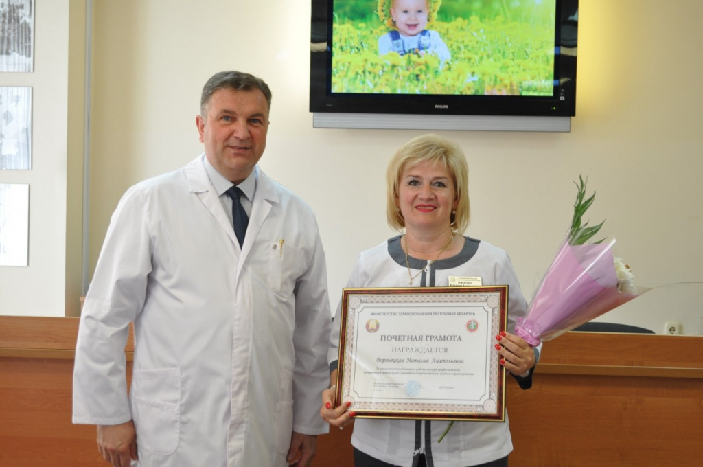 Почетной грамотой МЗ РБ награждена ВОРОНЕЦКАЯ Наталия Анатольевна, заведующая отделением ультразвуковой диагностики.